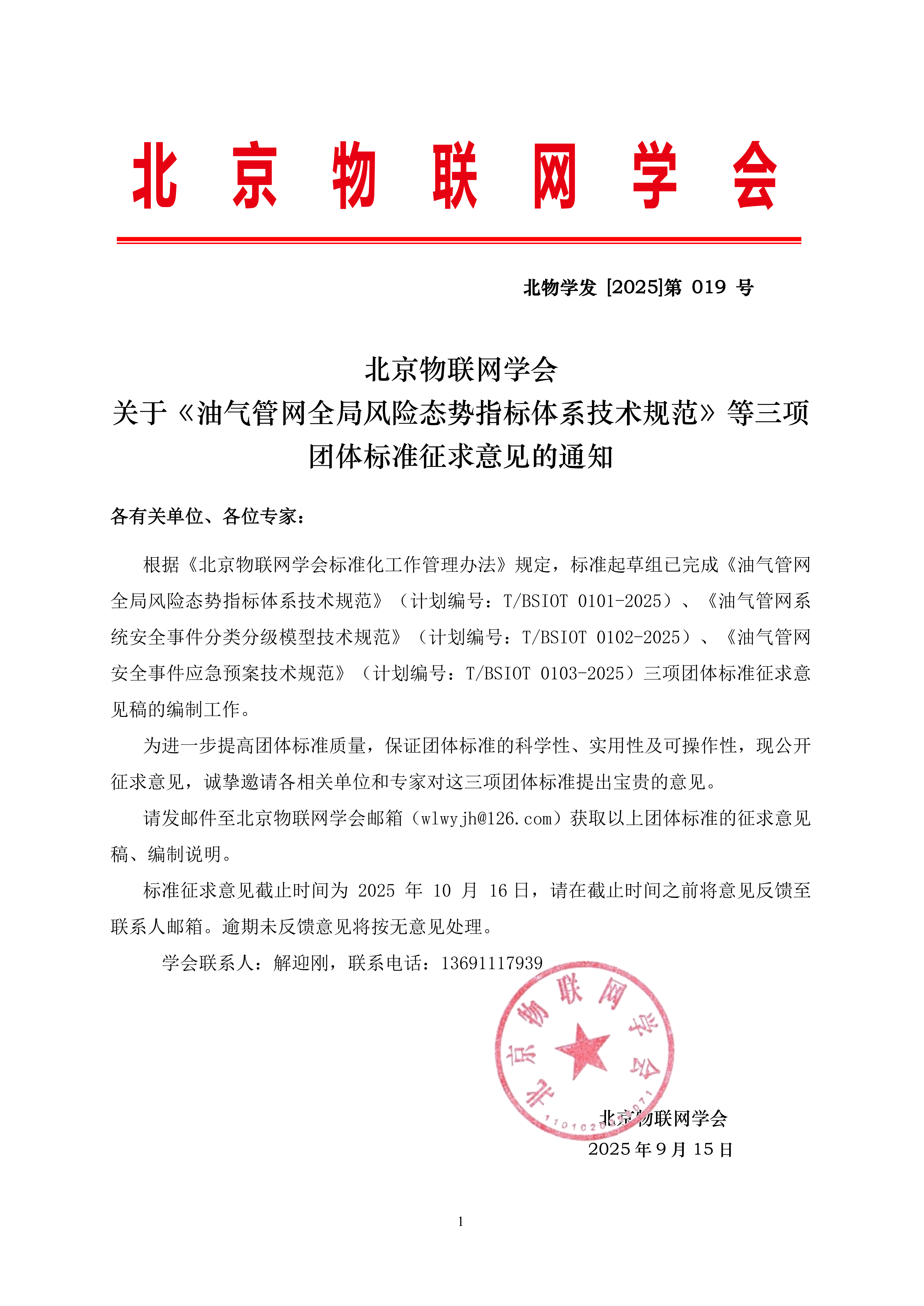 新闻中心>>学会新闻 >> 关于《油气管网全局风险态势指标体系技术规范》等三项团体标准征求意见的通知